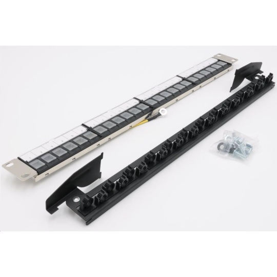 19" modulární stíněný patch panel XtendLan 24port, 4x demontovatelný modul, černý
