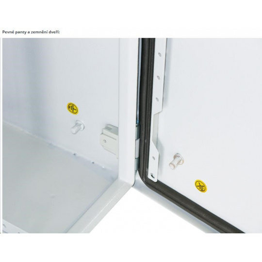 Vonkajší nástenný rozvádzač vyrobený z valcovanej ocele s hrúbkou 1,5 mm. Trojvrstvová povrchová úprava. Uskutočnenie: dvere - plné, otvárateľné o 110°, zameniteľný smer otvárania, tesnenie z penového polyuretánu zadný kryt - plný bočný kryt - plný horný kryt - plný