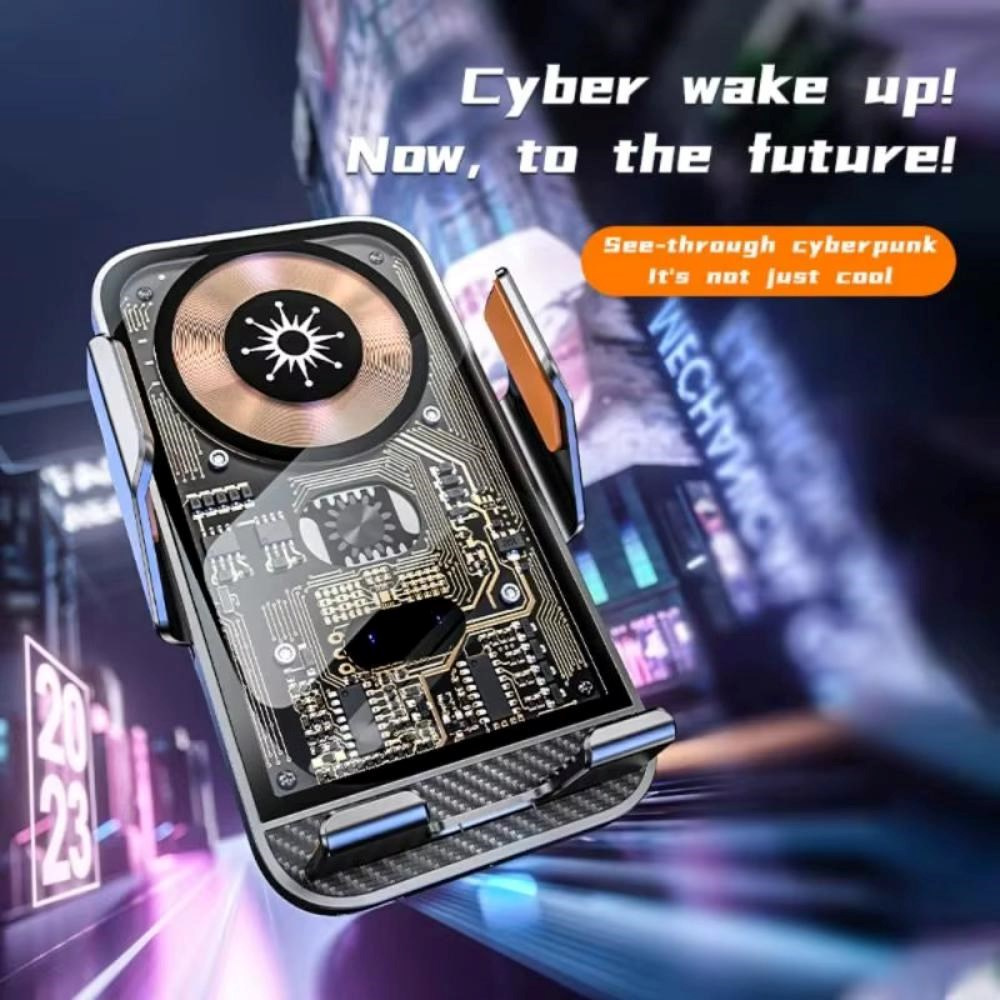 C10 Kvalitná hliníková bezdrôtová inteligentná nabíjačka do auta s optickým senzorom pre automatické roztiahnutie pri vkladaní telefónu a dotykovým senzorom pre otvorenie držiaka pri vybratí. Vybavená je držiakom s kĺbovou aretáciou na uchytenie do ventilácie.