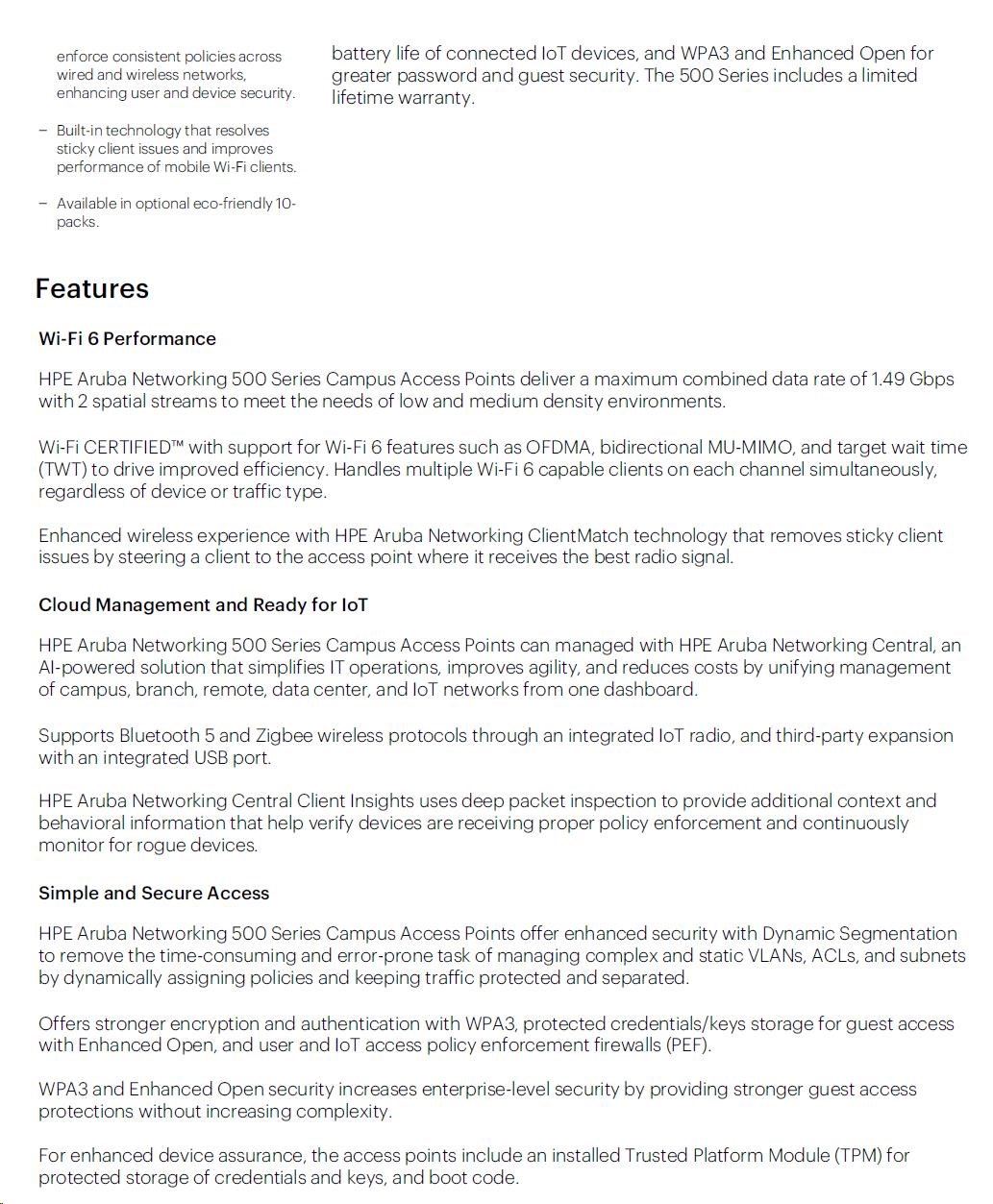 Odkaz na web výrobcu: https://www.arubanetworks.com/assets/ds/DS_AP500Series.pdf