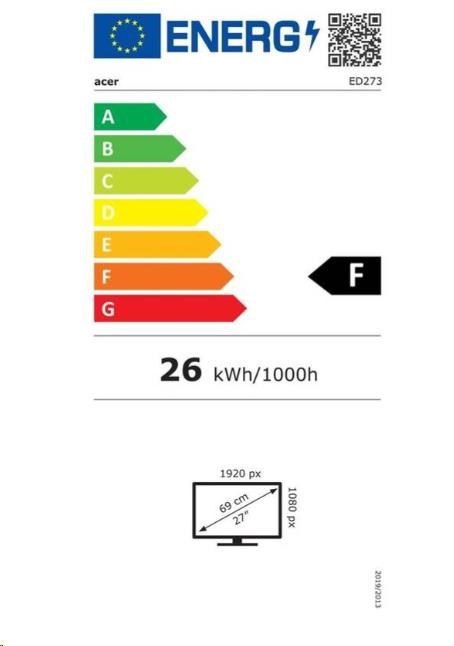 ACER LCD Nitro ED273US3bmiipx 69cm (27") VA LED Curved, WQHD 2560x1440@180Hz DP, 144Hz HDMI, 250cd/m2, 178/178,Black