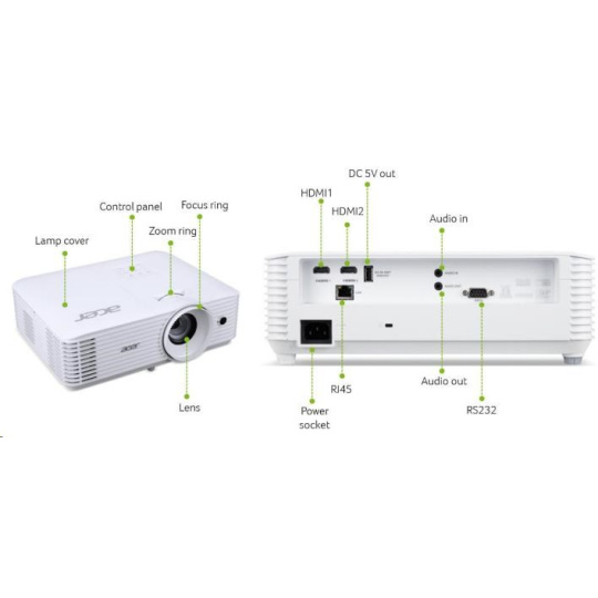 ACER Projektor P5550, DLP 3D, 1080p (1920x1080), 5200 ANSI, 15 000:1, VGA, HDMI(MHL), HDMI, RJ45, repro 1x10W, 2.73Kg, L