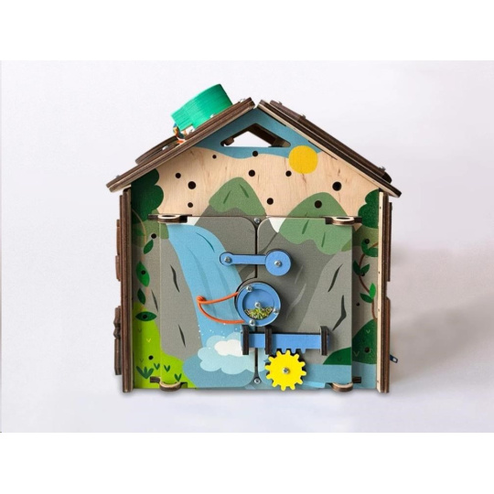 Po zdolaní rôznych otváracích mechanizmov sa deťom podarí otvoriť dvierka do activity board domčeka. V útulnom domčeku môžu ubytovať plyšové zvieratká alebo obľúbené bábiky. Pri otváraní a zatváraní dvierok deti potrénujú jemnú motoriku, koordináciu očí a rúk i logické myslenie.