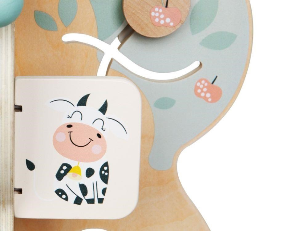 Activity board v podobe stromu zaučí dievčatá aj chlapcov na farme, kde si pohrajú s hracími prvkami a zvieratkami, ktoré môžu vidieť vo svojom okolí, na vidieku, na farme.