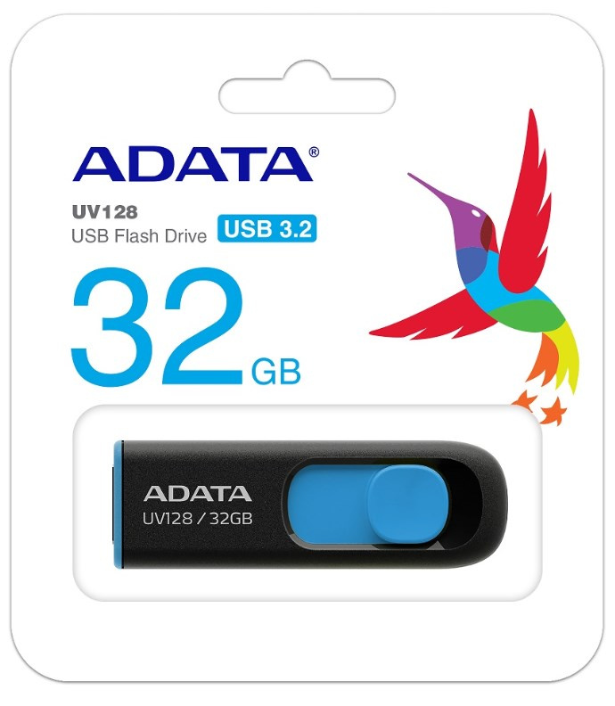 ADATA Flash disk 32GB UV128, USB 3.1 Dash Drive (R:40/W:25 MB/s) čierna/modrá