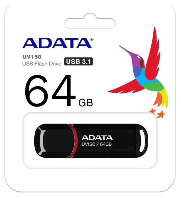 ADATA Flash Disk 64GB UV150, USB 3.1 disk Dash Drive (R:90/W:20 MB/s) čierny