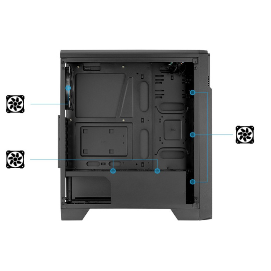 súčasťou skrinky sú 3x 120mm namontované predné ventilátory