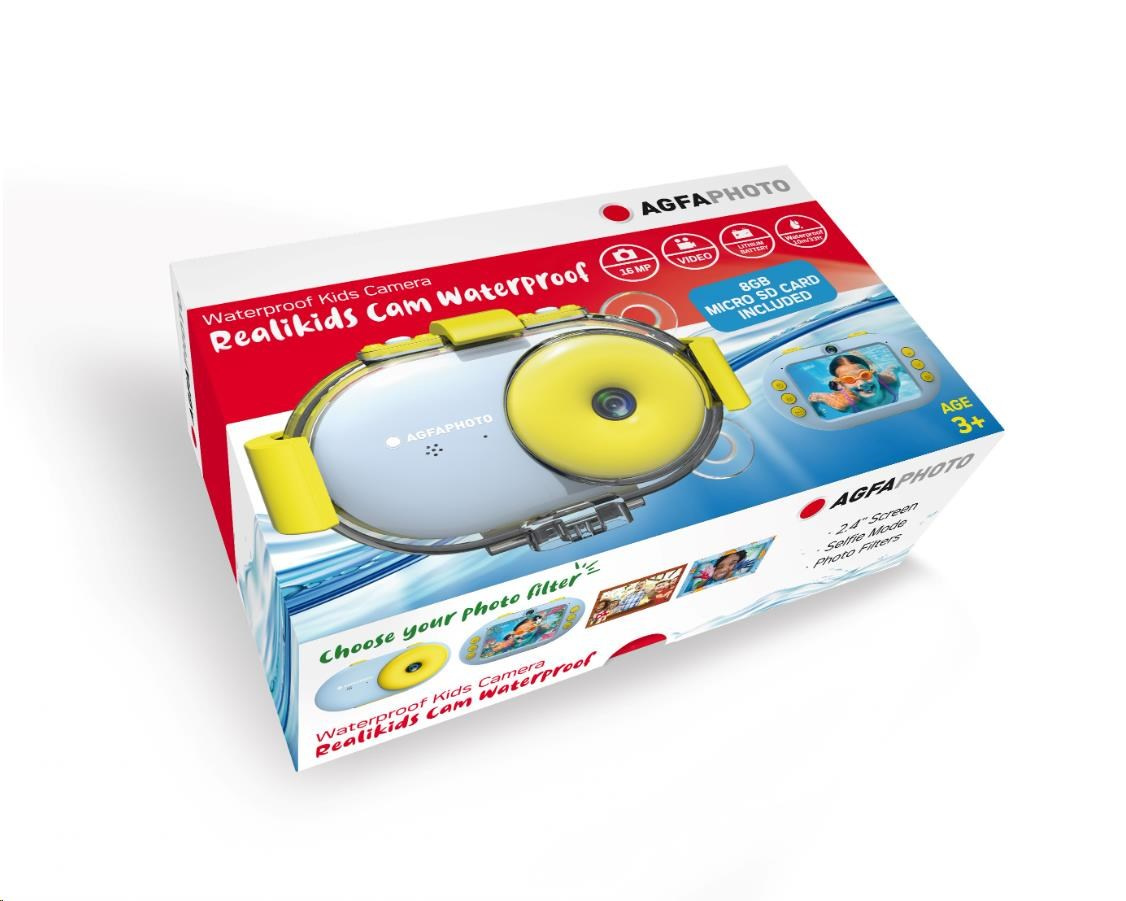 Vďaka puzdru, ktoré je vodotesné do 10 metrov, môže Realikids Cam Waterproof sprevádzať vaše deti na všetkých ich suších i podmorských dobrodružstvách. Je vybavená 2,4" LCD displejom na úspešné zachytenie fotografií/videí a ich pohodlné prehliadanie po nasnímaní. S 8GB micro SD kártkou a lítiovou batériou (súčasť balenia) je táto kamera pripravená na použitie. Jeho robustný a ergonomický dizajn zabezpečuje ľahké použitie pre malé ruky a poteší každého malého fotografa.