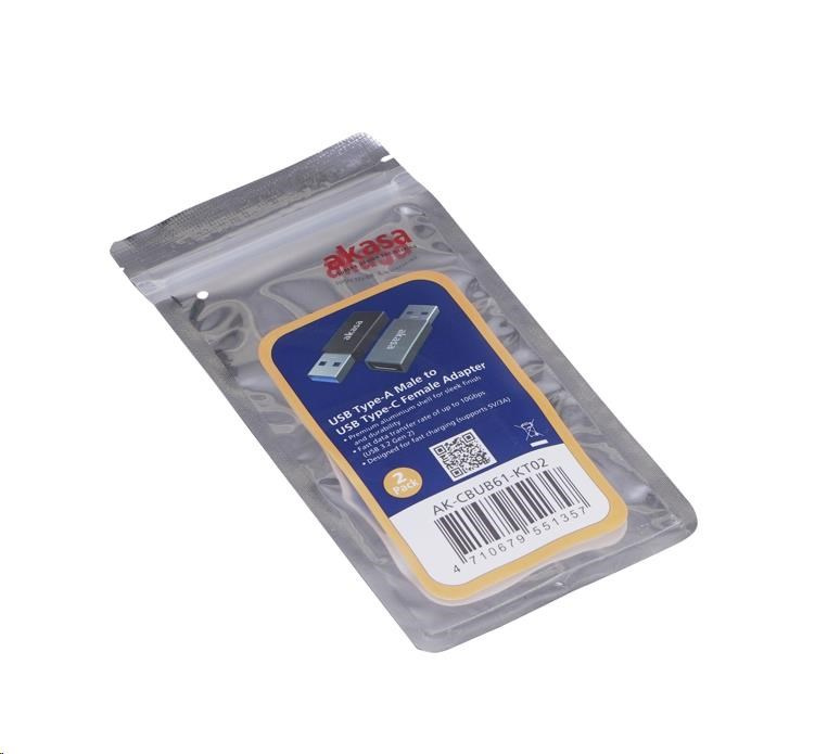 Adaptér AKASA USB3.1 Gen2 Type-C na Type-A (F/M), 2 ks v balení