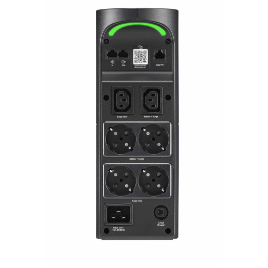 | Typ zásuviek | (1) IEC 320 C13 + (2) Schuko (Záložný prevádzka na batérie) & (1) IEC 320 C13 + (2) Schuko (Prepäťová ochrana) + (2) USB-A (5 V/ 3 A) & (1) USB-C (5 V / 3 A) |