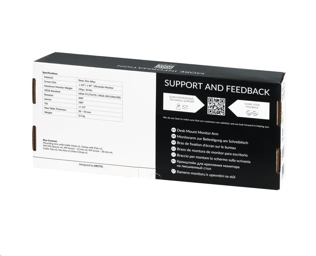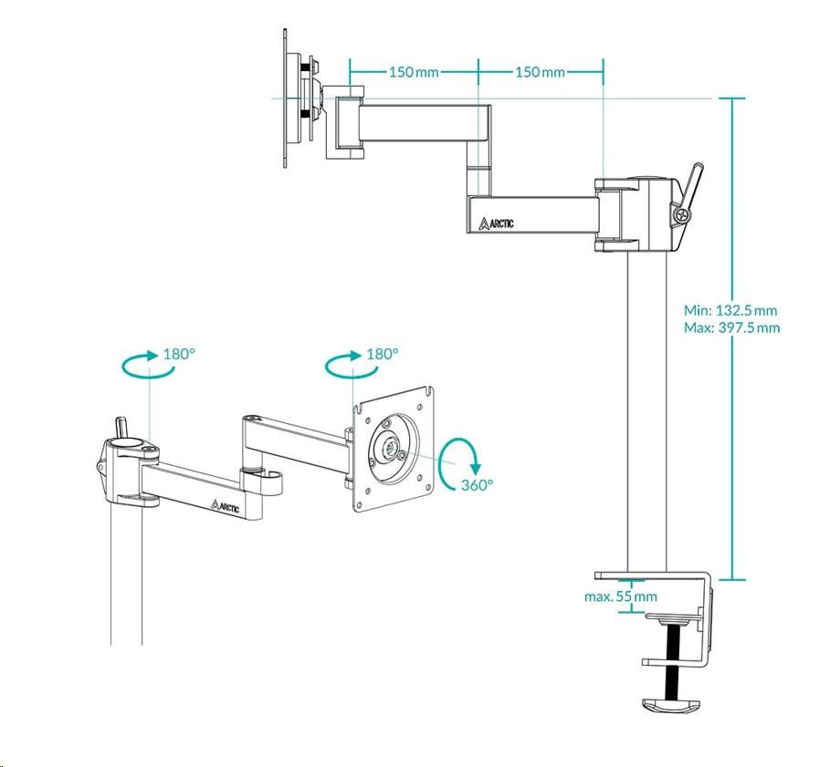 - JEDNODUCHÁ A RÝCHLA MONTÁŽ - Vďaka stolovej svorke možno rameno monitora voľne a ľahko umiestniť na okraj stola. Rameno je kompletne zmontované a jednoducho sa nasadí na tyč. Montáž alebo neskoršie premiestnenie je preto hračka a dá sa vykonať rýchlo.