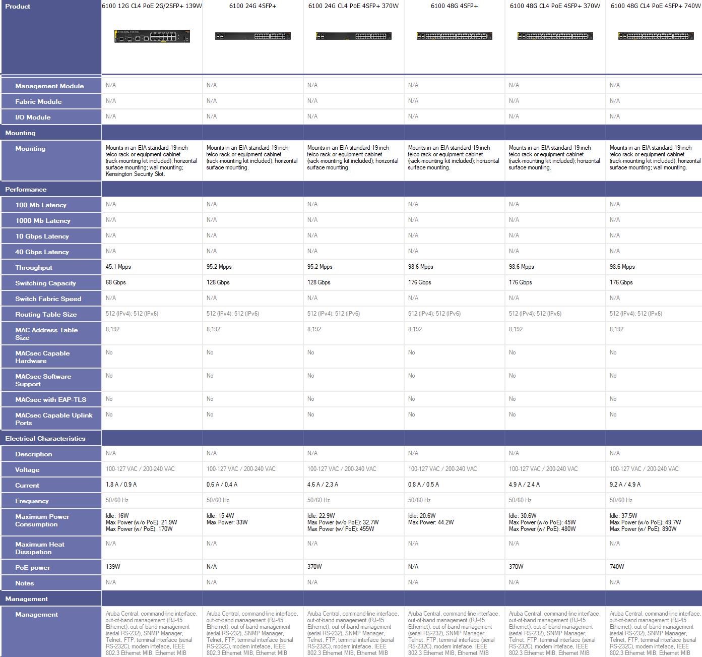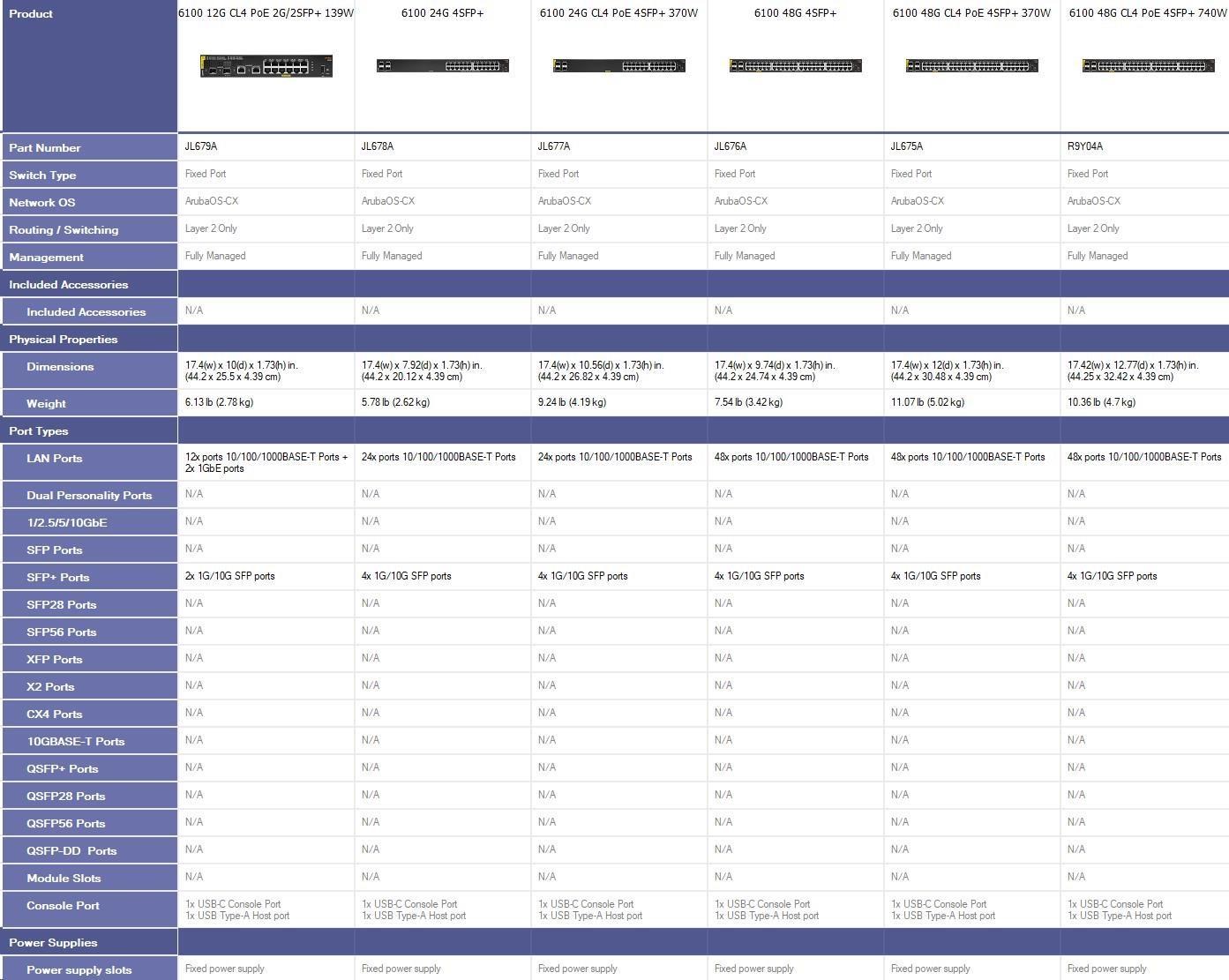 HPE Aruba CX 6100 Switch Specifications