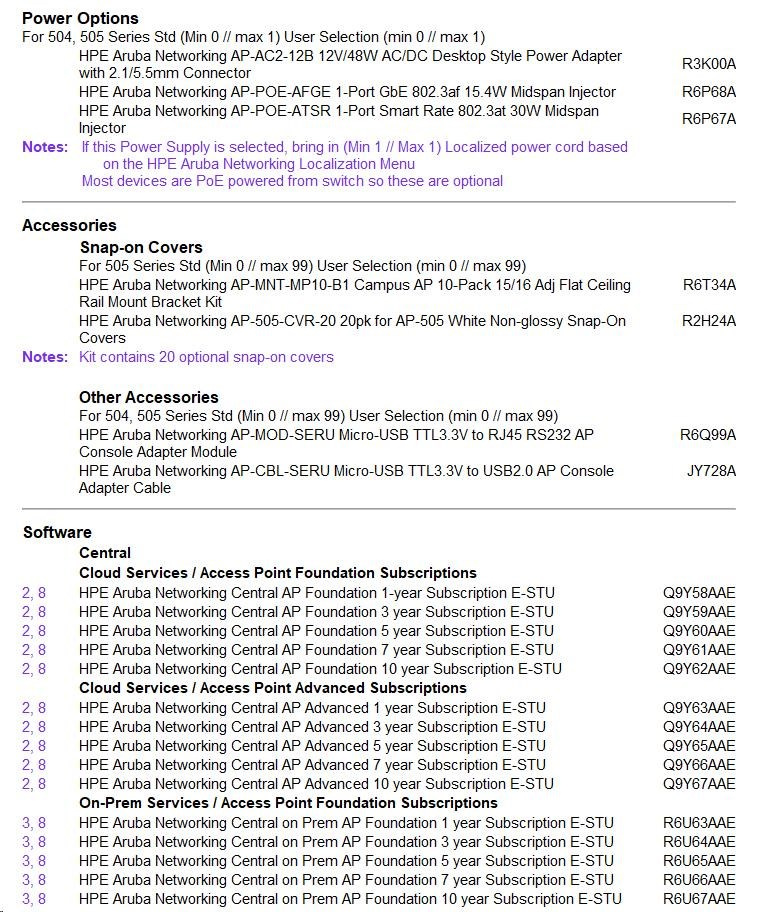 • Management: Aruba Central (cloud) or on-prem controller