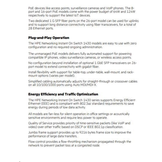 | Model | HPE Networking Instant On 1430 — 26p Gigabit + 2 SFP |