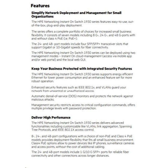 Fan-less design for 8-port models, 24- and 48-port non-PoE models, making the switches ideal for office deployments.