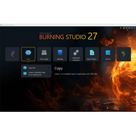 Nové Ashampoo Burning Studio 27 představuje nejpohodlnější způsob, jak bezpečně vypálit data a bez námahy kopírovat disky CD, DVD a Blu-ray. Ripujte zvukové disky a zálohujte hudbu nebo si vytvářejte vlastní hudební kompilace s vhodným obalem! Další špičkové multimediální funkce vám také umožňují vytvářet vlastní filmy a prezentace a dokonce je vypalovat na disk spolu s elegantními animovanými nabídkami. Rozlučte se se ztrátou dat, okamžitě zálohujte soubory a zapisujte důležitá data na jakýkoli typ disku s výkonnou kompresí a ochranou heslem. A nové funkce pro pohodlné používání audioknih, audiopřehrávání a podcastů zaručují vysoce kvalitní zábavu!