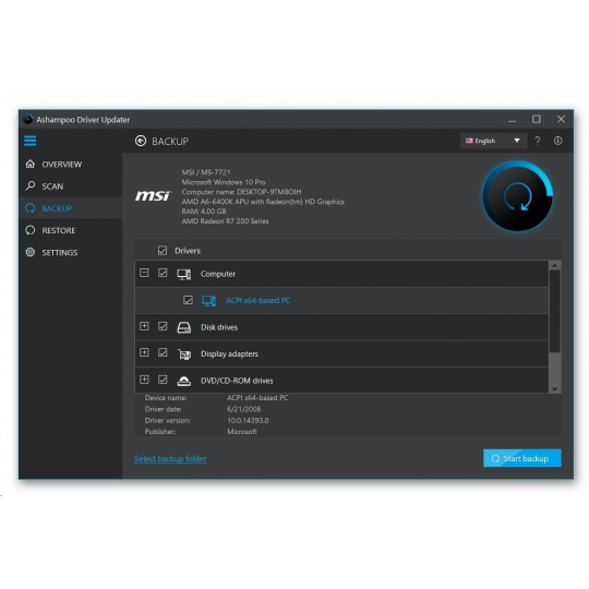 S nástrojem Ashampoo Driver Updater nebudete riskovat nic. Jeho vestavěná funkce zálohování vám umožní uložit a v případě potřeby obnovit jakýkoli ovladač. Ponechte si jen to, co je pro vás skutečně přínosné!