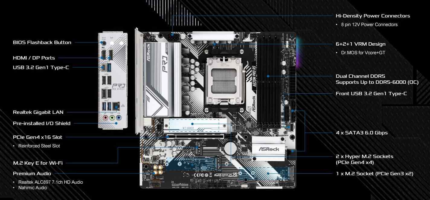 • Supports AMD Socket AM5 Ryzen™ 9000, 8000 and 7000 Series Processors