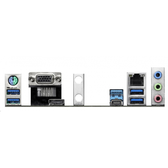 | Vstupy/výstupy na zadnom paneli | - Držiak antény - 1 x port PS/2 pre myš/klávesnicu - 1 x port D-Sub - 1 x port HDMI - 1 x USB 3.2 port typu A Gen2 (10 Gb/s) (podporuje ochranu proti prepätiu) - 1 x USB 3.2 Gen2 port typu C (10 Gb/s) (podporuje ochranu proti ESD) - 4 x USB 3.2 porty Gen1 (podporuje ochranu proti ESD) - 1 x port RJ-45 LAN s LED diódou (ACT/LINK LED a SPEED LED) - HD audio konektory: Line in / Predný reproduktor / Mikrofón  |