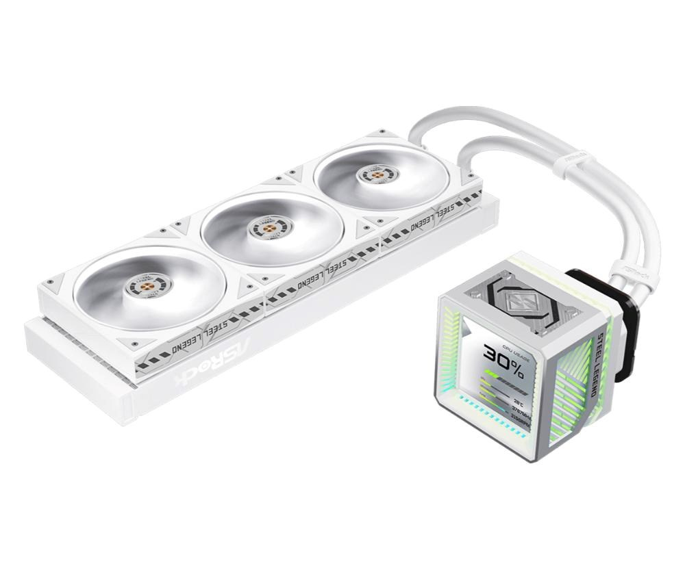 ASROCK Vodní chladič Steel Legend 360 LCD, 3x120mm, LGA1851, AM5, bílá