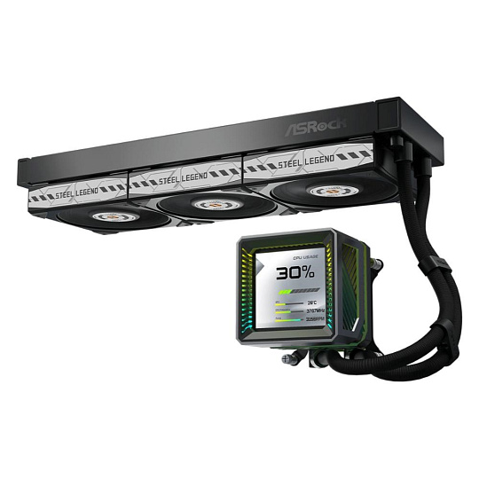 ASROCK Vodní chladič Steel Legend Dark 360 LCD, 3x120mm, LGA1851, AM5, černá