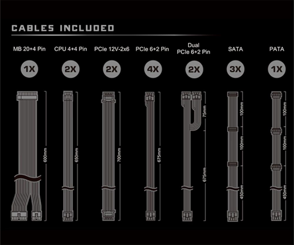 | PCIe 12V-2x6 Konektor | 2x / 1x (700 mm) |