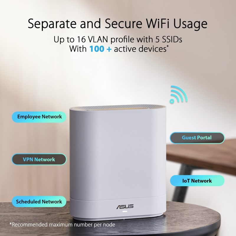 - Rozšíriteľné pokrytie WiFi – ExpertWiFi poskytuje až 12 sieťových pripojení uzlov pre rozšírenie vašej obchodnej siete o funkcie AiMesh.