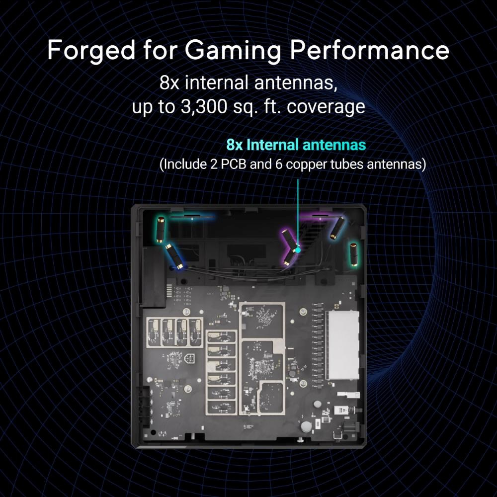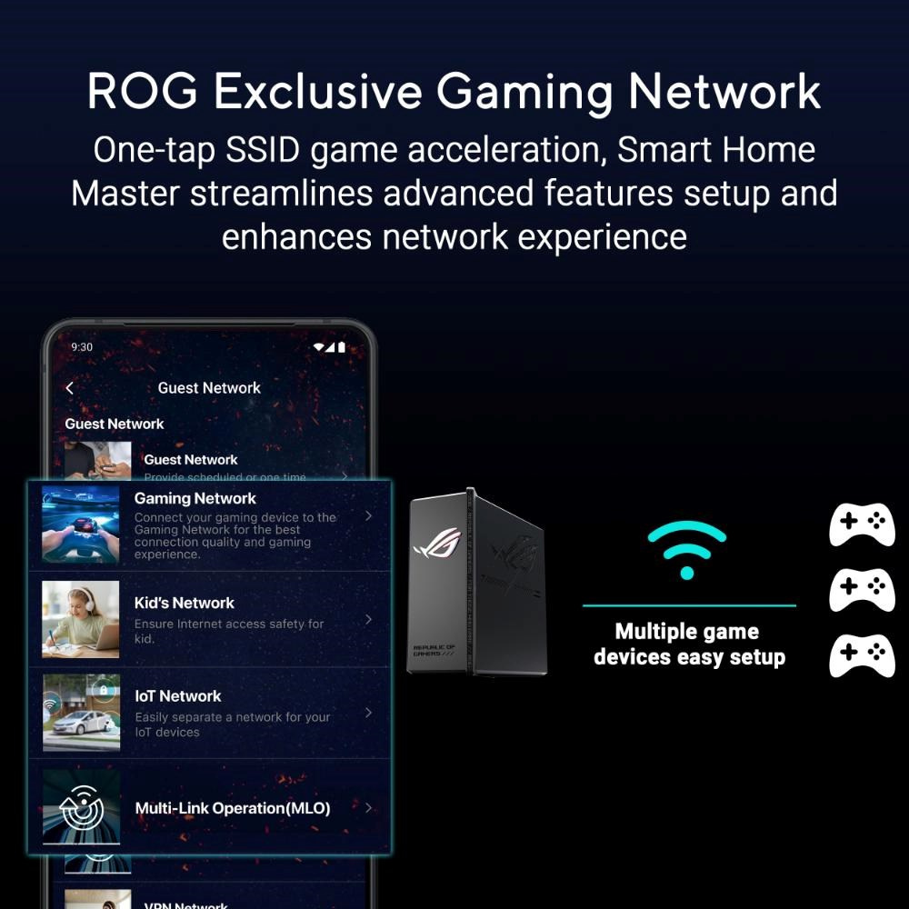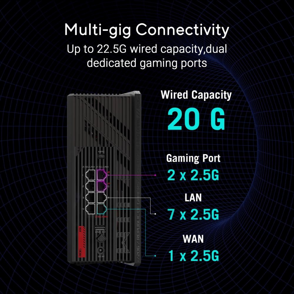 ROG Strix GS-BE18000 je dokonalý herný smerovač, ktorý je určený pre tých, ktorí požadujú dokonalosť. Bleskurýchle rýchlosti až 18 000 Mb/s poháňané špičkovou trojpásmovou WiFi 7 a 4x4 MIMO, plus kombinovaná kapacita káblového pripojenia 20G, zabezpečujú bezproblémové hranie s nízkou latenciou na všetkých platformách. Exkluzívna herná sieť ROG prináša tiež prielomovú akceleráciu hier pomocou jedného klepnutia na SSID, zatiaľ čo trojúrové zabezpečenie siete zabezpečuje a zjednodušuje váš pripojený svet.