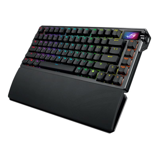 ROG Azoth Extreme je prispôsobiteľná 75% herná klávesnica s prémiovým šasím z hliníkovej zliatiny a kovovým rámom. Vyznačuje sa rýchlosťou hlásenia 8000 Hz s ROG Polling Rate Booster a viac než 1600 hodín výdrže batérie v bezdrôtovom režime ROG SpeedNova 2,4 GHz. Vylepšený OLED dotykový displej a trojpólový knoflík umožňujú sledovanie systému a rýchle nastavenie. Polohovacia doska z uhlíkovej ocele zabezpečuje ostrý zvuk pri písaní, zatiaľ čo tri tlmiace vrstvy absorbujú vibrácie. Nastaviteľný držiak tesnenia s pádly spínača ponúka dve možnosti písania.