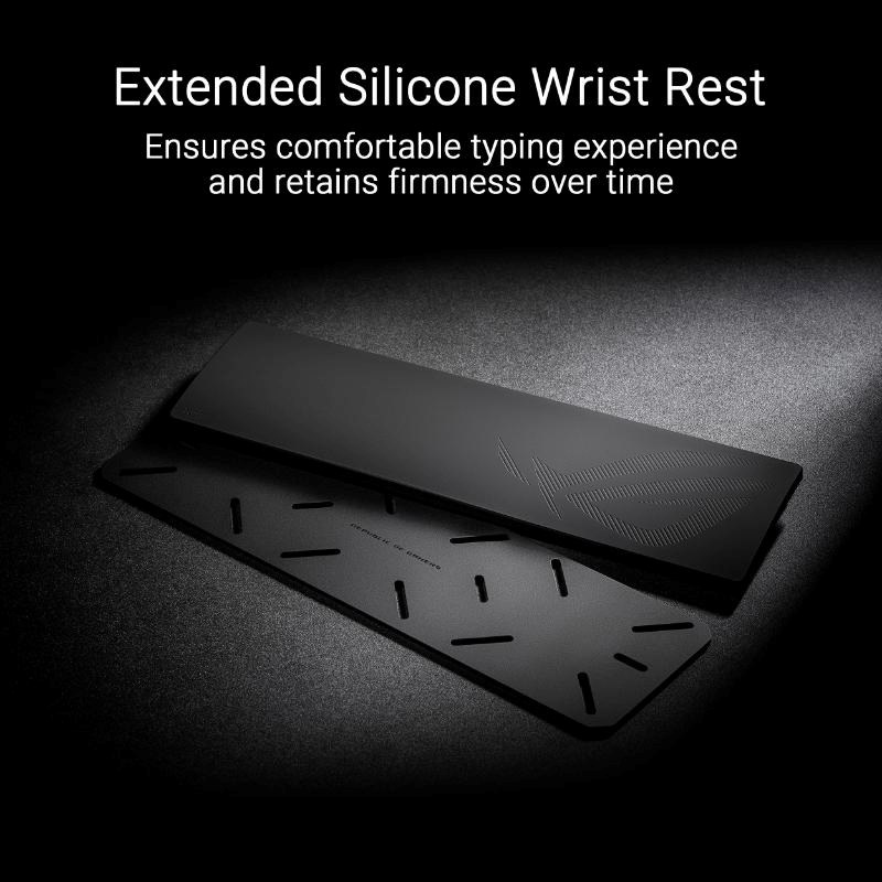 ROG Azoth Extreme je prispôsobiteľná 75% herná klávesnica s prémiovým šasím z hliníkovej zliatiny a kovovým rámom. Vyznačuje sa rýchlosťou hlásenia 8000 Hz s ROG Polling Rate Booster a viac než 1600 hodín výdrže batérie v bezdrôtovom režime ROG SpeedNova 2,4 GHz. Vylepšený OLED dotykový displej a trojpólový knoflík umožňujú sledovanie systému a rýchle nastavenie. Polohovacia doska z uhlíkovej ocele zabezpečuje ostrý zvuk pri písaní, zatiaľ čo tri tlmiace vrstvy absorbujú vibrácie. Nastaviteľný držiak tesnenia s pádly spínača ponúka dve možnosti písania.