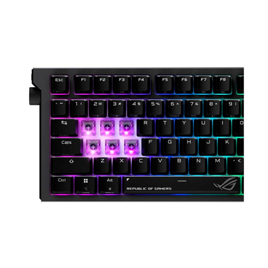 - Unikátní klávesy s tématikou ROG: Tři dodatečné průsvitné klávesy s motivy ROG umožňují další přizpůsobení vzhledu