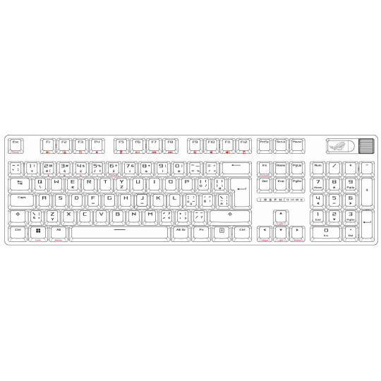 - PBT / ABS klávesy s UV vrstvou: Odolné klávesy ROG PBT doubleshot alebo klávesy ABS s UV vrstvou ponúkajú prvotriedny pocit a odolnosť proti lesku