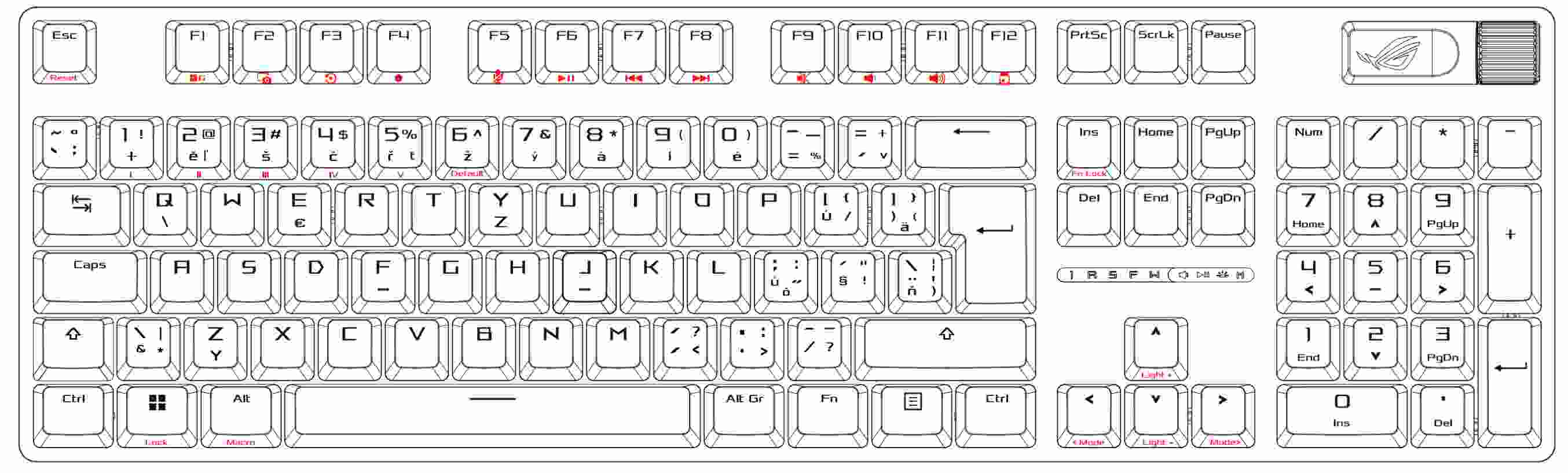 - PBT / ABS klávesy s UV vrstvou: Odolné klávesy ROG PBT doubleshot alebo klávesy ABS s UV vrstvou ponúkajú prvotriedny pocit a odolnosť proti lesku