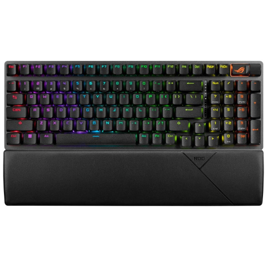 Herná klávesnica ROG Strix Scope II X s mechanickými spínačmi ROG NX V2 s možnosťou výmeny za prevádzky, penovým tlmením zvuku, zdvojenými klávesami PBT alebo ABS s UV povlakom, streamovacími klávesami, multifunkčnými ovládacími prvkami, tromi uhlami sklonu a opierkou zápästia.