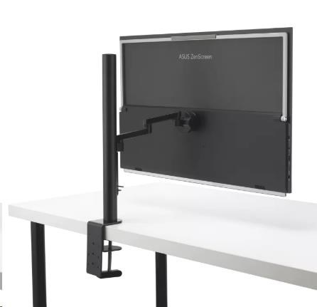 Rameno s C-svorkou umožňuje naklápať a otáčať obrazovku ZenScreen MB27ACF pre ideálne sledovanie vo výške očí. Ponúka náklon -5°-20°, natočenie -90-90°, otočenie -90-90° a nastavenie výšky až o 144 mm. Rýchloupínací mechanizmus umožňuje jednoduchú montáž alebo odpojenie monitora od stojanu.