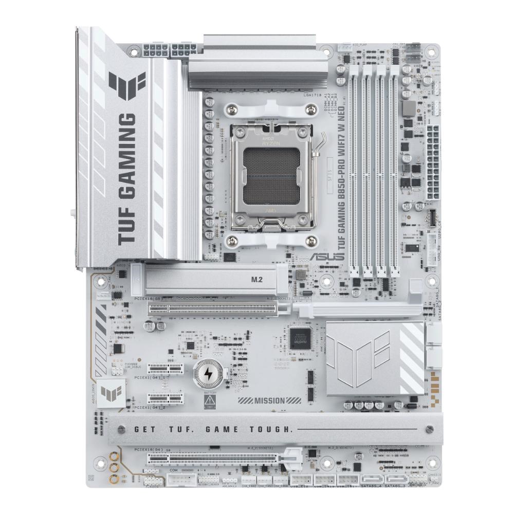 ASUS TUF GAMING B850-PRO WIFI7 W NEO takes all the essential elements of the latest AMD Ryzen™ processors and combines them with game-ready features and proven durability. Engineered with an upgraded power solution and a comprehensive cooling system, this motherboard goes beyond expectations with rock-solid and stable performance for marathon gaming. TUF GAMING motherboards also undergo rigorous endurance testing to ensure that they can handle conditions where others may fail. This platform delivers the power and connectivity that advanced AI PC applications demand.