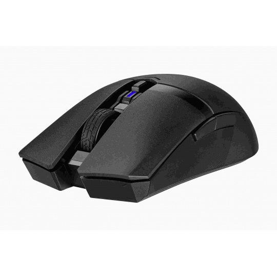 Ľahká obojručná herná myš s dvoma bezdrôtovými režimami, snímačom s rozlíšením 12 000 dpi, šiestimi programovateľnými tlačidlami, vrchným krytom PBT s antibakteriálnou ochranou ASUS, 100 % PTFE nožičkami a puzdrom Armoury Crate.