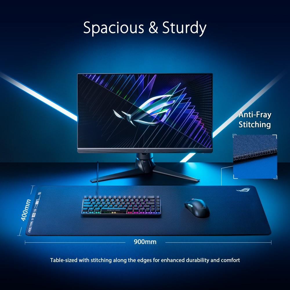 Herná podložka pod myš ROG Hone Ace XXL Aim Lab Edition je navrhnutá tak, aby spolupracovala s úlohou Aim Lab X ROG 360 a pomáhala hráčom zlepšiť ich zamieranie. Hone Ace XXL má hybridný textilný povrch pre hladší sklz a lepšiu kontrolu, povrchovú ochrannú nano vrstvu odpudzujúcu vodu, olej a prach a mäkkú protisklzovú gumovú základňu.