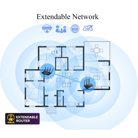 - Jednoducho rozšíriteľná sieť - Vychutnajte si bezproblémové roaming s bohatými pokročilými funkciami pridávaním ľubovoľného routeru kompatibilného s AiMesh.