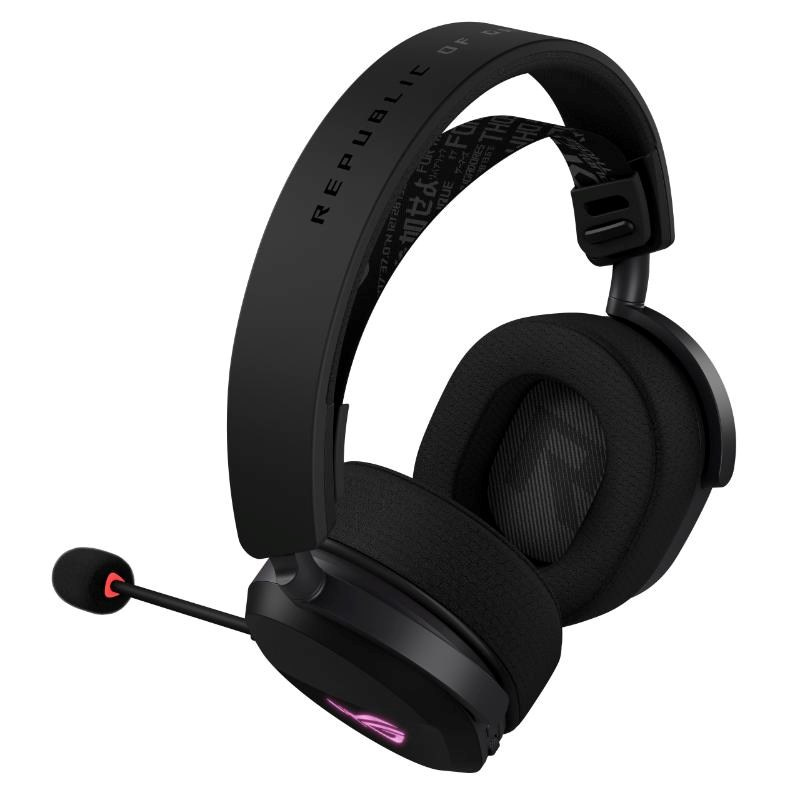 Herné slúchadlá so tri režimami RGB s bezdrôtovou technológiou ROG SpeedNova, 50mm ROG titanom pokovené membránové meniče, vylepšený bezdrôtový zvukový podpis, 10mm super širokopásmový raménkový mikrofón, ľahký dizajn 309 g a navyše osvetlenie ASUS Aura Sync RGB