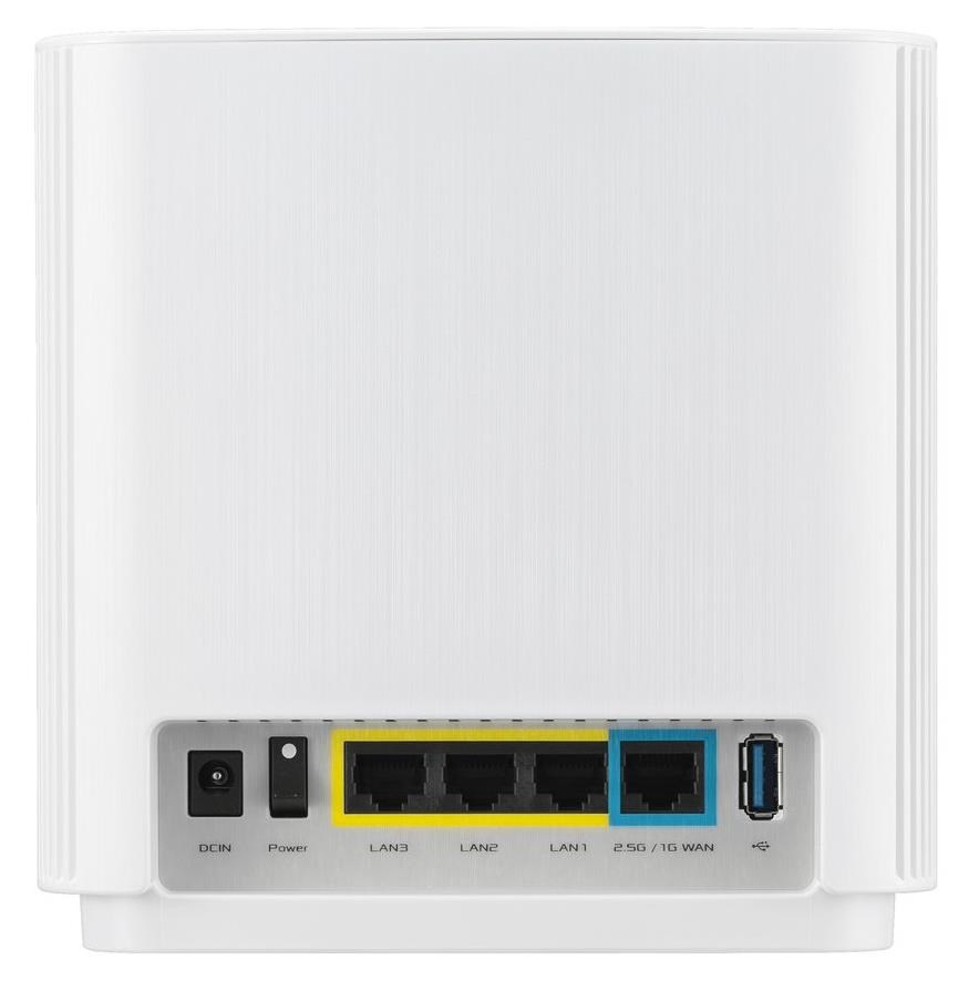 Wireless AX7800 Tri Band 2.5Gigabit Router WiFi 6 (802.11ax), 2402Mbps (5G-1) Wi-Fi 6 (802.11ax), 4804Mbps (5GHz-2) Wi-Fi 6 (802.11ax), 574bps (2.4GHz) Whole home mesh wifi system for large and multi-story homes Supports flexible SSID setting, wired inter-router connections AiProtection Pro network security powered by Trend Micro Ethernet 2.5Gigabits WAN x 1, LAN x 3 USB 3.1 Gen 1 x 1.