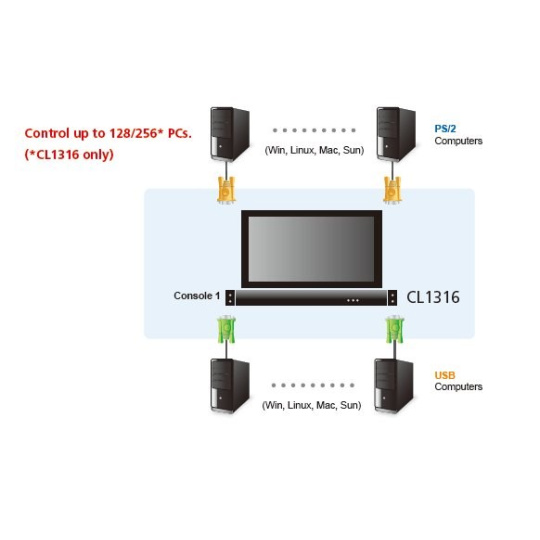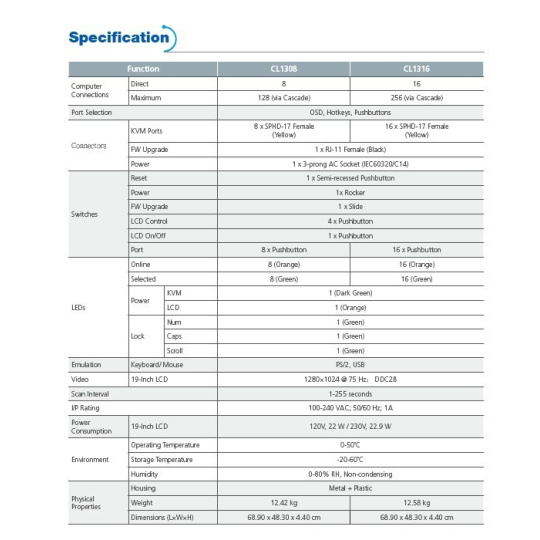 ATEN 16-port KVM PS/2+USB, OSD, rack, 19" LCD, touchpad, klávesnice