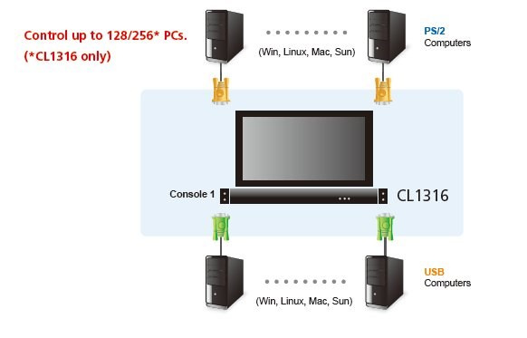 ATEN 16-port KVM PS/2+USB, OSD, rack, 19" LCD, touchpad, klávesnice