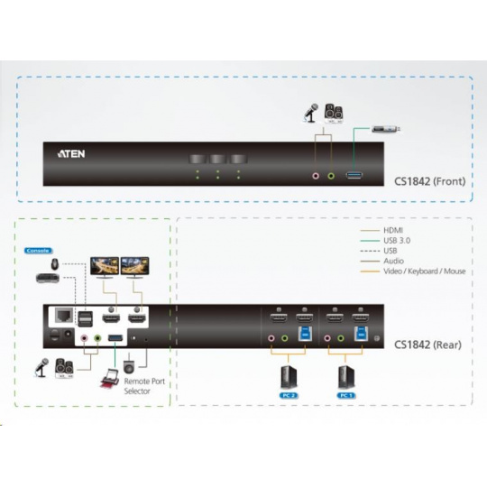 Prepínač KVM ATEN CS1942DP vám pomôže zorganizovať pracovnú plochu. Najmä pri správe multimediálnej pracovnej stanice vo veľkej organizácii ponúka CS1942DP používateľom okamžitý prístup k dvom počítačom,
