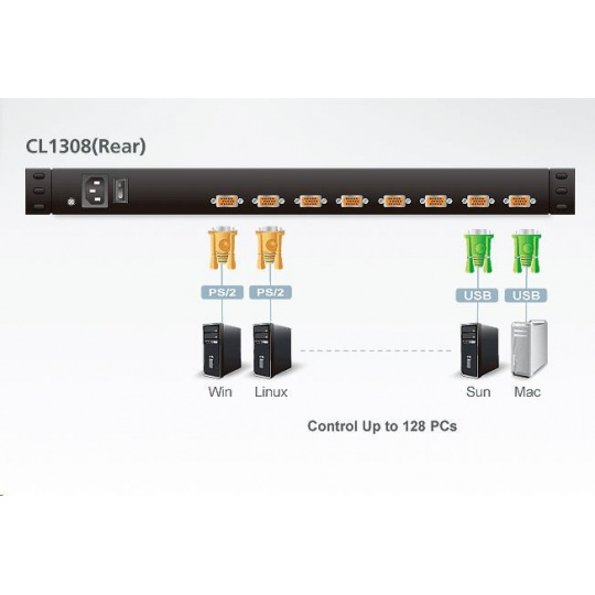 Prepínač KVM s integrovanou klávesnicou, touchpadom a 19" LCD displejom v stohovateľnej výsuvnej zásuvke. Vhodný do serverovne, kde vám ušetrí miesto. K prepínaču KVM možno pripojiť až 16 počítačov s rozhraním USB alebo PS/2 a možno ho montovať do stojana. Prepínač možno ovládať pomocou tlačidiel, klávesovej skratky alebo prostredníctvom vstavanej ponuky OSD.