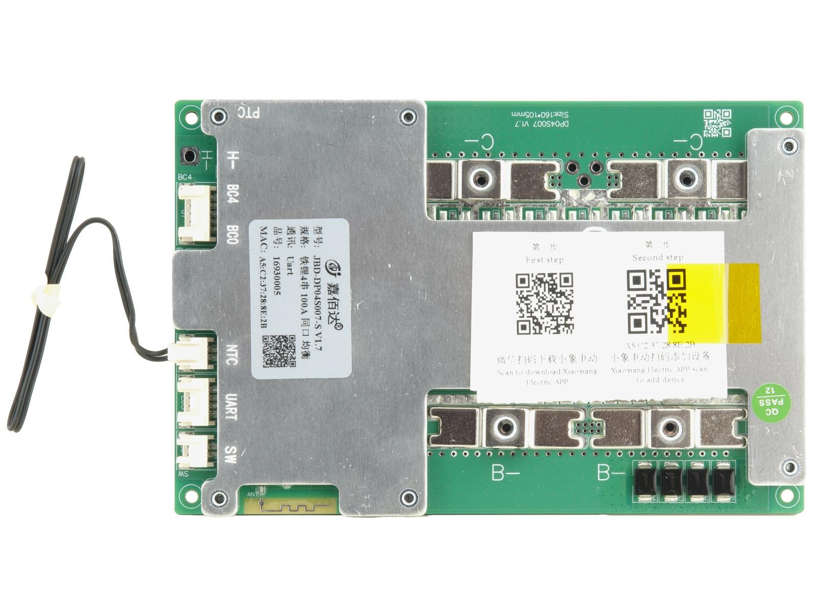 JBD Smart BMS 100A je ochranný obvod s balancérom 4 LiFePO4 články, ktorý zabezpečuje ochranu, kontrolu a správu parametrov a procesov akumulátora.
