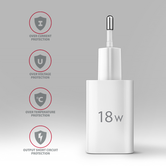 Nabíječka je vybavená výstupem Quick Charge 3.0 USB typu A, čo umožňuje rýchle nabíjení smartphonů a tabletů výkonem až 18W. Adaptér je také kompatibilní s ďalšími štandardy rychlého nabíjení telefonů, ako sú Apple iPhone, iPad, Samsung, Huawei, Honor, Xiaomi, Motorola a dalších.