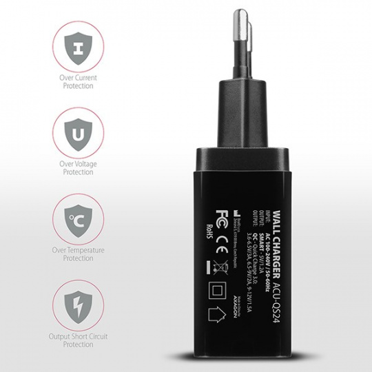 AXAGON ACU-QS24, sieťová nabíjačka QC & SMART 24 W, 2x port USB-A, QC3.0/AFC/FCP + 5V/1,2A