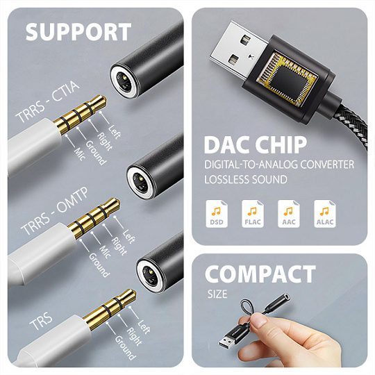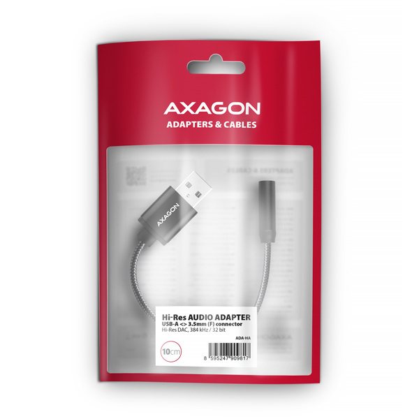 AXAGON ADA-HA, USB-A na 3.5mm jack Hi-Res DAC audio adaptér, 384kHz/32bit, stereo