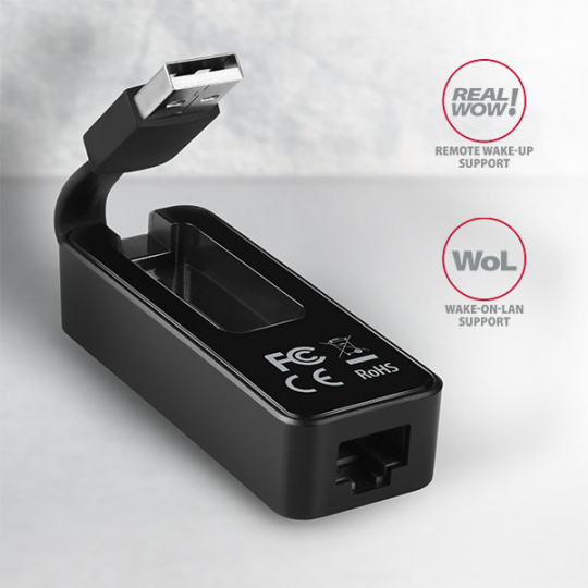 AXAGON ADE-XR, USB 2.0 - Fast Ethernet sieťová karta, auto inštal, čierna